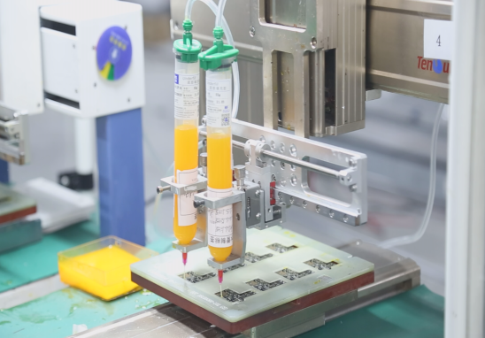 公司自主研制Underfill 底部填充封裝材料,品質(zhì)媲美國際先進(jìn)水平,具有粘接強(qiáng)度高,適用材料廣,黏度低、固化快、流動性高、返修性能佳等諸多優(yōu)點,已被廣泛應(yīng)用于新能源汽車、智能終端、消費類電子的手機(jī)藍(lán)牙模塊芯片與智能穿戴芯片填充、指紋識別模組與攝像模組芯片封裝、鋰電池保護(hù)板芯片封裝等生產(chǎn)環(huán)節(jié)上,可有效起到加固、防跌落等作用。